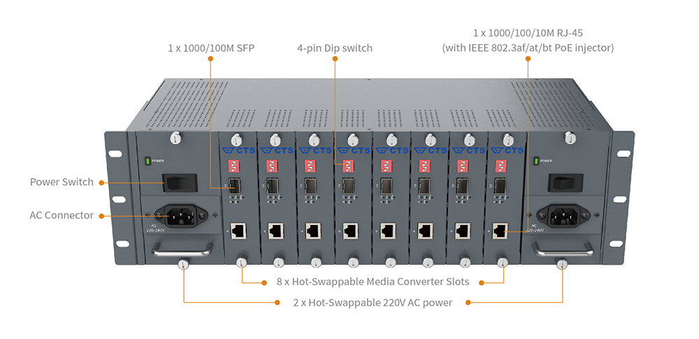 8-Slot PoE Media Converter Chassis