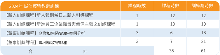 Governance 永續治理與績效 全年無產品與行銷法規違規,客戶資料亦未洩漏、失竊或遺失,彰顯康聯訊的合規與安全承諾。 永續策略與組織 利害關係人與重大議題 資訊安全 誠信經營 治理架構 Menu 永續策略與組織 利害關係人與重大議題 資訊安全 誠信經營 治理架構 誠信經營 誠信正直是我們公司的企業精神,為了建立誠信經營的企業文化和促進公司的健全發展,本公司在 2024年 4 月 10 日通過了「誠信經營準則」和「道德行為準則」,並在2018 年 8 月 9 日通過了「檢舉非法、不道德或不誠信行為案件的處理辦法」。董事會、管理層以及所有員工都被要求踐行誠信經營的承諾,並且遵守誠信保密原則,提供相應的檢舉管道以防止不當行為的發生,亦包含有違規之懲戒及申訴制度。任何關於「誠信經營準則」的修改或廢止都需要經過董事會的同意。董事會有責任對公司進行監督,防止不誠信行為的發生,並確保誠信經營政策得以貫徹實施。管理部門負責推動執行,並在出現不誠信行為時至少一年一次向董事會報告處理情況及改善措施。 推動誠信經營狀況書下載: 項目 下載 2024年 誠信經營推動執行結果 2023年 誠信經營推動執行結果 防範內線交易法令教育宣導 本公司訂有「內部重大資訊處理及防範內線交易管理辦法」,於每季至少一次對現任內部人宣導有關內部人持股事前及事後變動申報相關注意情事;每年至少一次會以電子郵件方式對該作業程序及相關法令適時提供教育宣導。對新任董事及獨立董事於上任後提供法規宣導手冊,於其就任起五日內簽署確知內部人相關法令聲明書,其中董事及獨立董事之聲明書影本於就任之日起十日內函送櫃買中心,並留存備查。為使公司董事,能對防範內線交易相關法令規範有更深入的瞭解,舉辦「防範內線交易宣導課程」及「誠信經營訓練課程」,內容中亦涵蓋違反誠信- 內線交易案例及內線交易防範方法之宣導,人數統計詳見上表。課程結束後並將簡報檔案置於內部員工系統,提供給同仁查閱參考。 回選單